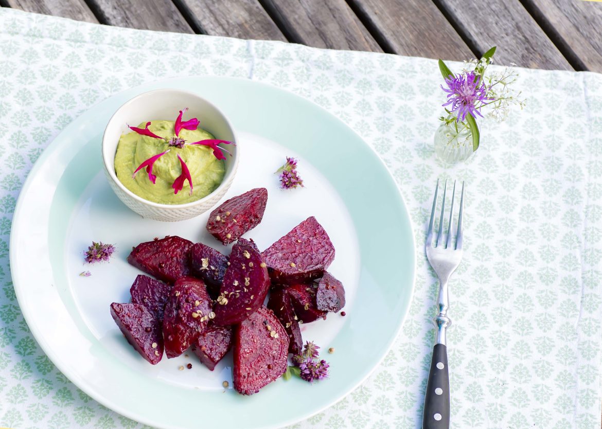 Das Rübengemüse bringt nicht nur aufgrund seiner knalligen Farbe gute Laune auf den Teller. Es kurbelt u.a. die Serotoninproduktion an und hat noch weitere positive Gesundheitseffekte. Zudem ist es lecker, z.B. als Ofengemüse […] Zubereitung Ofengemüse (reicht für ca. 2 Personen): Zubereitung Grüner Hummus (reicht für ca. 4 Personen): Wer nicht so auf Kichererbsen-Hummus vsteht, kann das Ofengemüse stattdessen auch mit Sauerrahm genießen. Wer keinen Koriander mag, kann stattdessen auch Sesam verwenden. Natürlich können alternativ auch Wildkräuter, wie zum Beispiel Giersch verwendet werden.